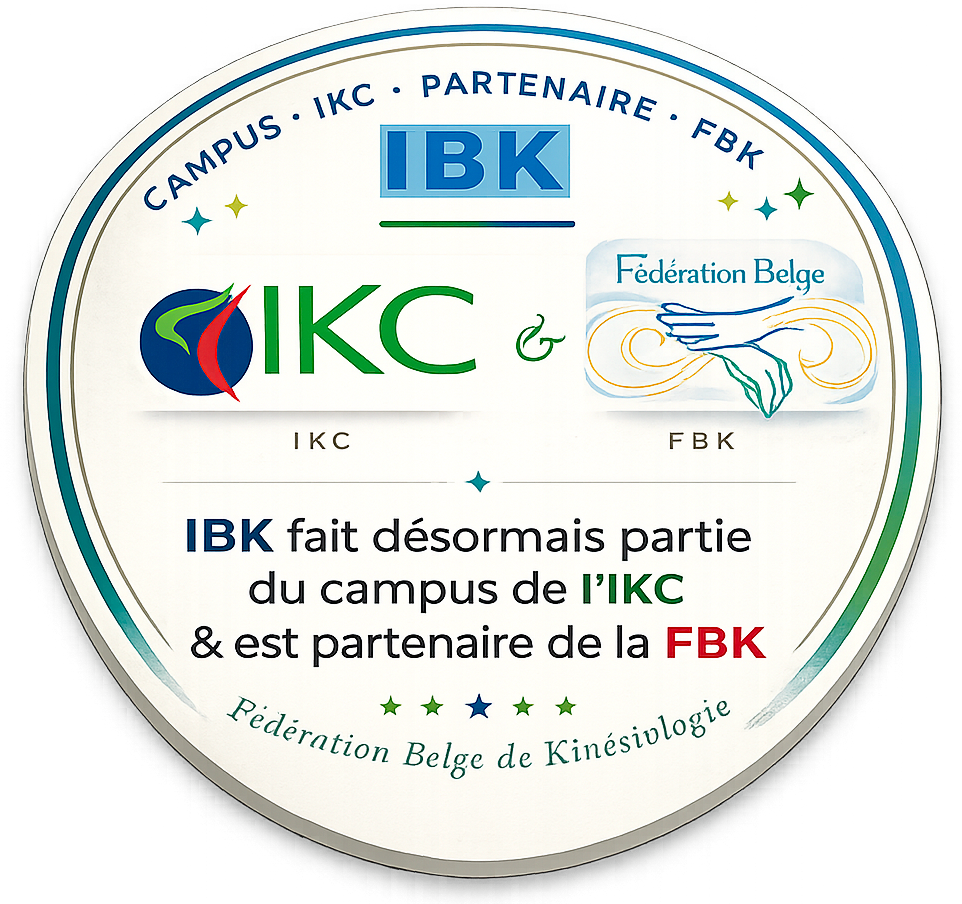 Fondé en 1986, l’Institut Belge de Kinésiologie (IBK) propose des formations en kinésiologie et disciplines complémentaires comme l’Analyse Transactionnelle, l’EFT ou le TRE. Reconnue par l’IKC, l’école s’est forgée une renommée internationale en accueillant des enseignants de référence et en attirant des étudiants venus du monde entier.